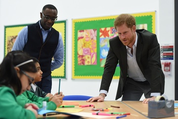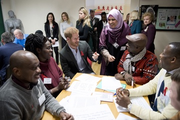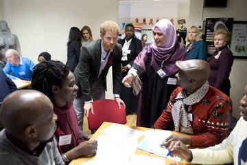 Ksiaze Harry podczas wizyty w Leicestershire Aids Support Service