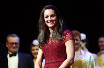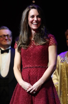 Ksiezna Kate w bordowej sukni w Theatre Royal