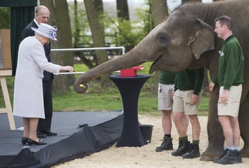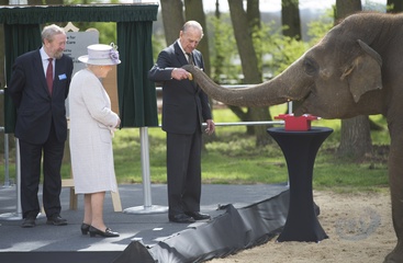 Krolowa Elzbieta II i ksiaze Filip w ZOO na otwarciu centrum dla sloni