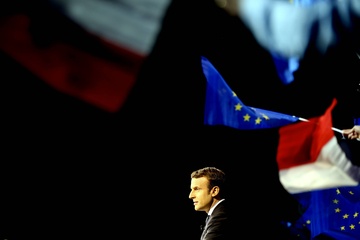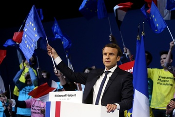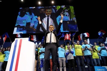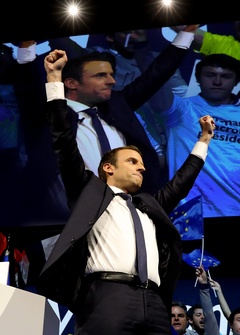 Emmanuel Macron na spotkaniu przedwyborczym w Nantes, Francja