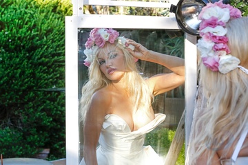Seksowna Pamela Anderson pozuje w sukni slubnej