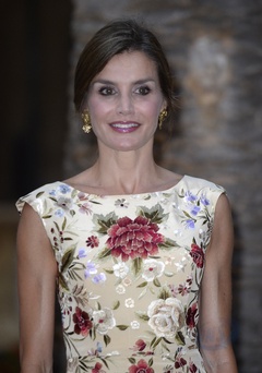 Krolowe Hiszpanii w kwiecistych sukienkach na przyjeciu