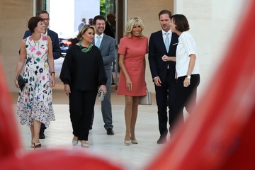 Brigitte Macron i ksiezna Luksemburga Maria Teresa w Muzeum Sztuki Nowoczesnej