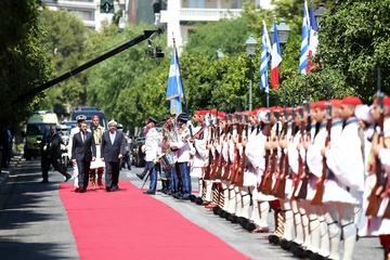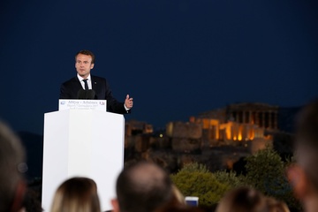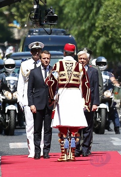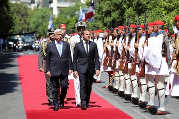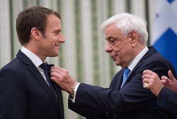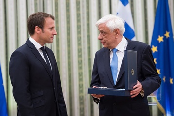 Prokopis Pavlopoulos, Emmanuel Macron, Brigitte Macron, Vlassia Pavlopoulou-Peltsemi