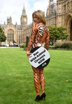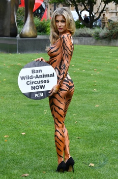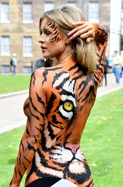 Joanna Krupa na nago, pomalowana w tygrysie wzory w akcji PETA