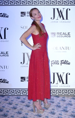 Lindsay Lohan w czerwonej sukience na Madrid Fashion Week