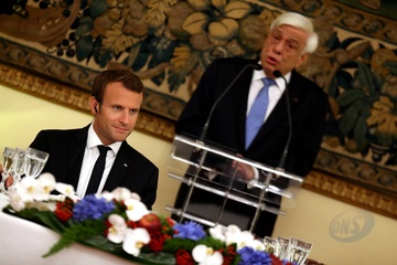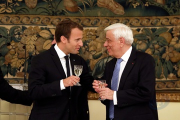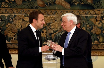 Prokopis Pavlopoulos, Emmanuel Macron, Betty Batziana
