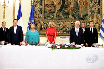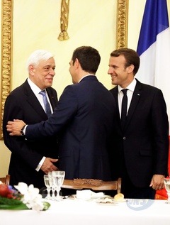 Alexis Tsipras, Vlassia Pavlopoulou-Peltsemi, Prokopis Pavlopoulos, Emmanuel Macron