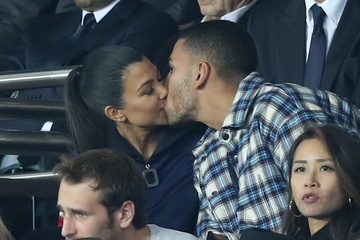 Kourtney Kardashian z chlopakiem caluja sie na meczu