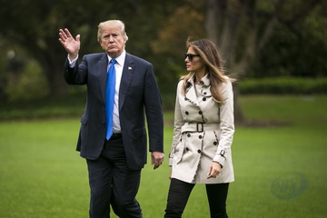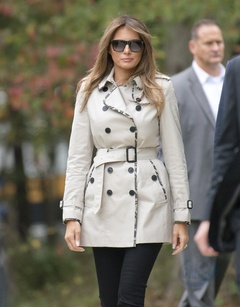 Melania Trump w trenczu i w plaskich butach