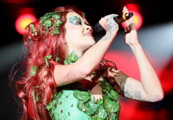 Rita Ora w zielonym przebraniu na Kiss FM Haunted House Party