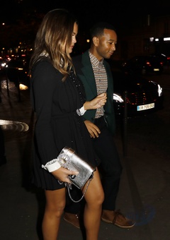 Chrissy Teigen z mezem w drodze na After-party Miu Miu w klubie Boum Boum