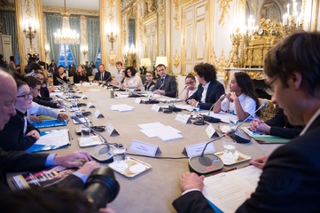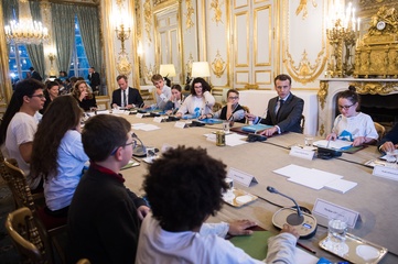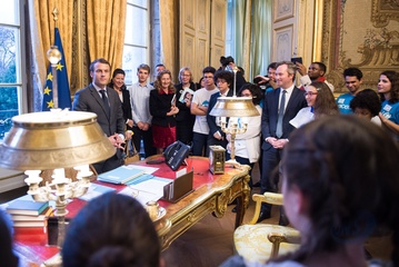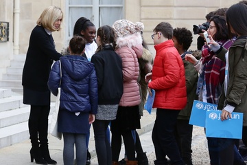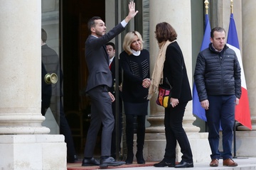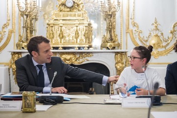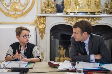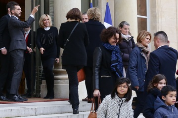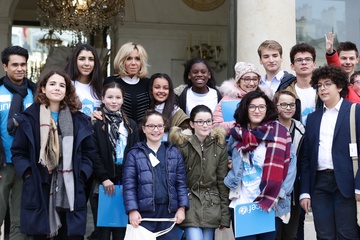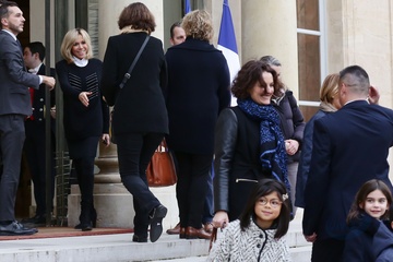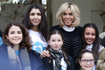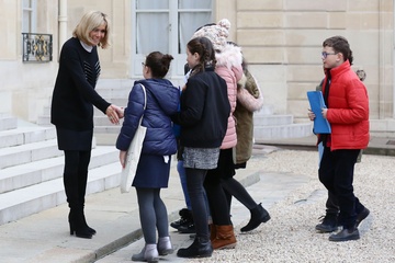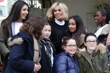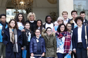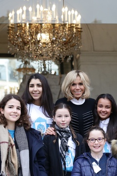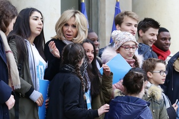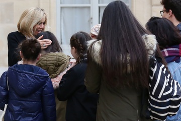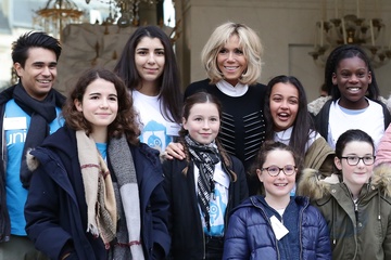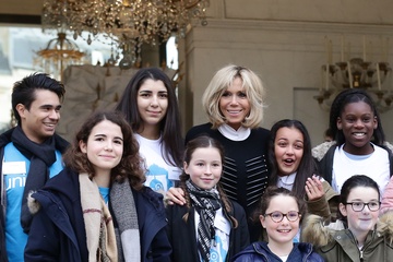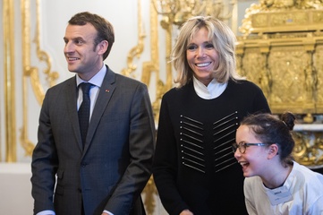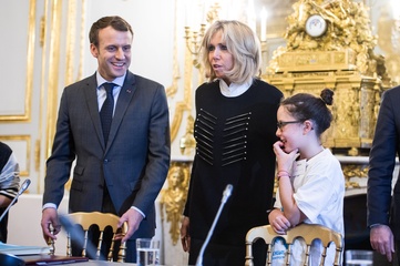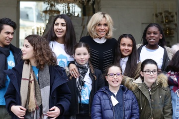 Brigitte Macron i Emmanuel Macron spotkali sie z dziecmi okazji dnia praw dziecka