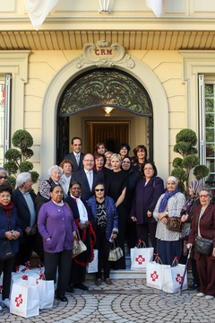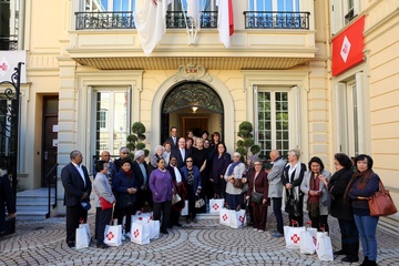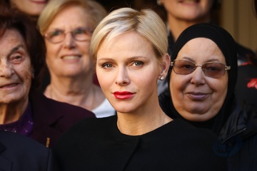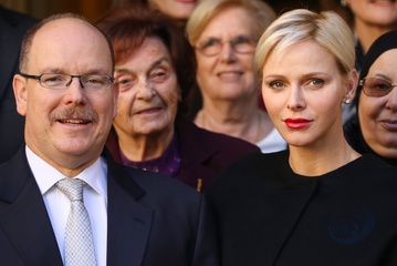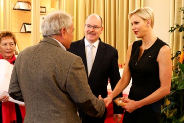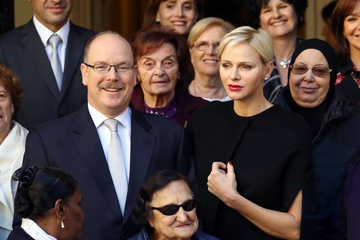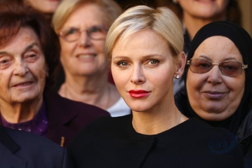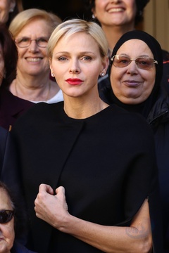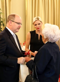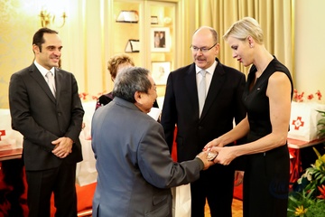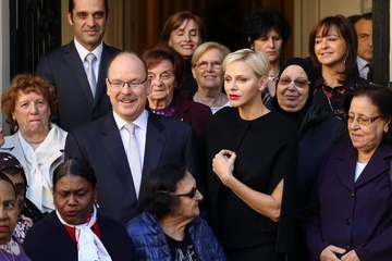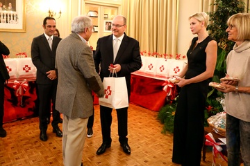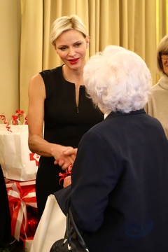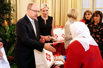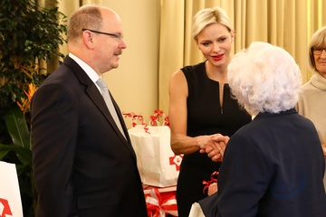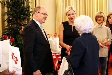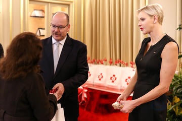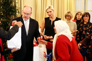 Ksiezna Charlene i ksiaze Albert wreczyli prezenty w siedzibie Czerwonego Krzyza