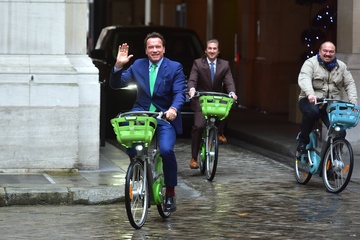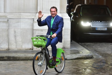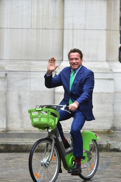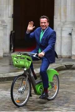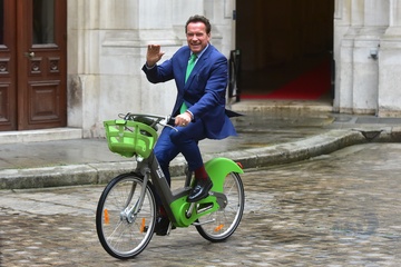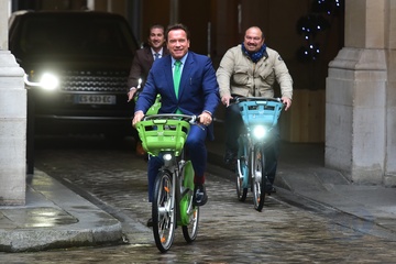 Arnold Schwarzenegger na rowerze w Paryzu