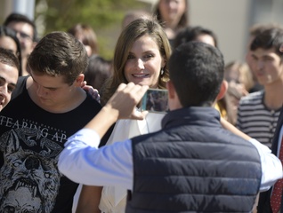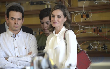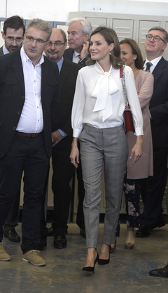 Krolowa Letizia w bialej koszuli z duza kokarda