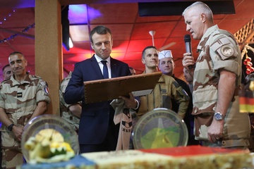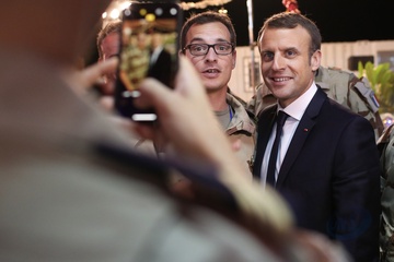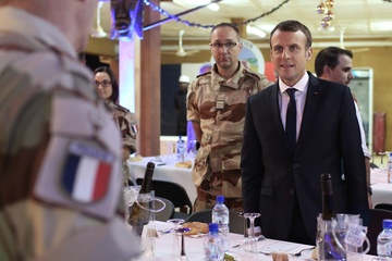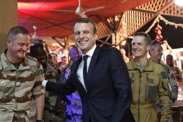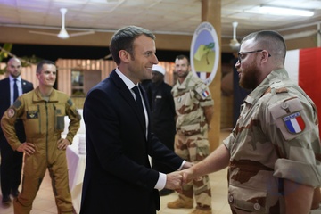 Emmanuel Macron spotkal sie z zolnierzami francuskimi w Nigrze