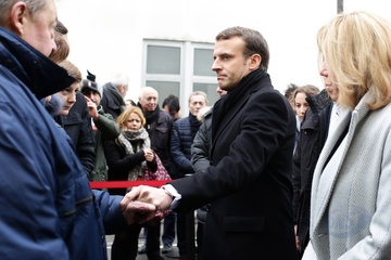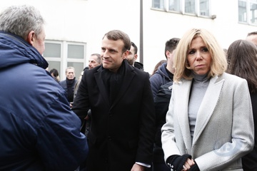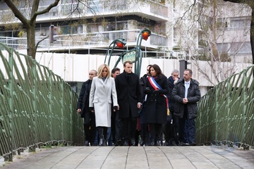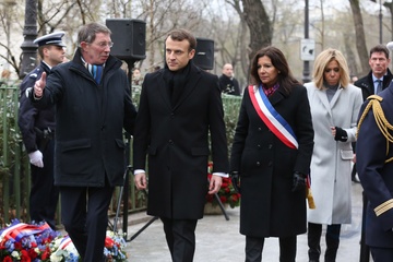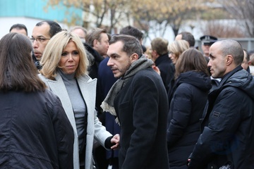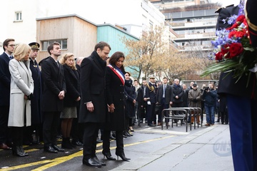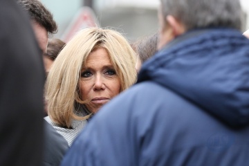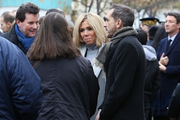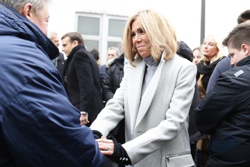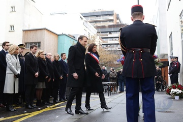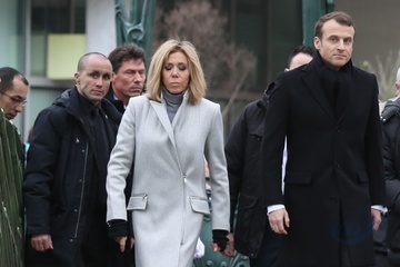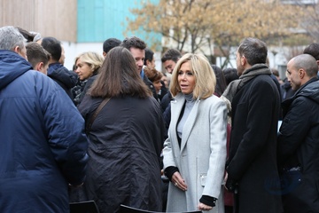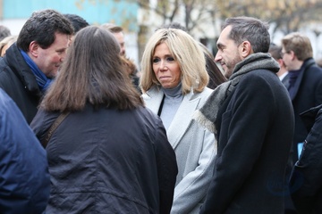 Brigitte Macron i Emmanuel Macron podczas rocznicy zamachu w Charlie Hebdo