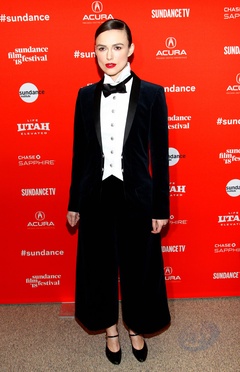 Keira Knightley we fraku i muszce na premierze Colette na festiwalu Sundance