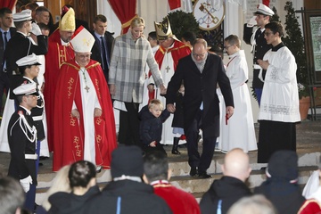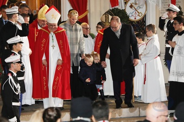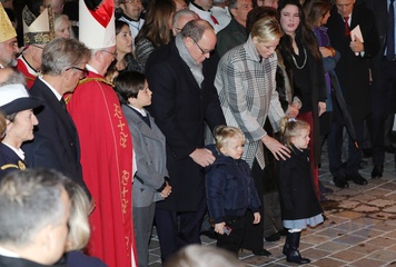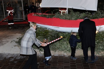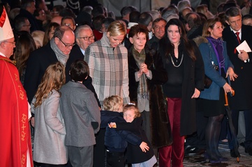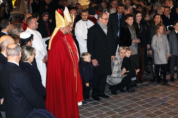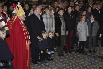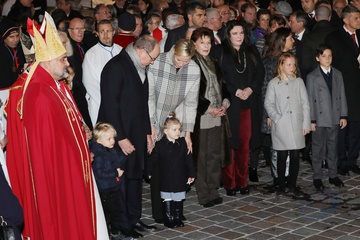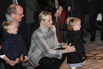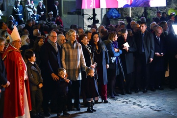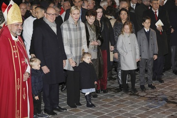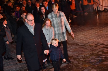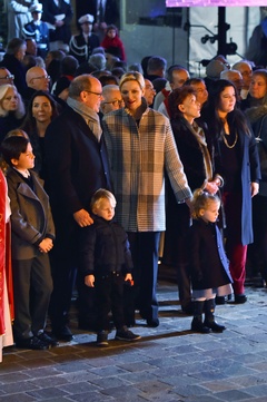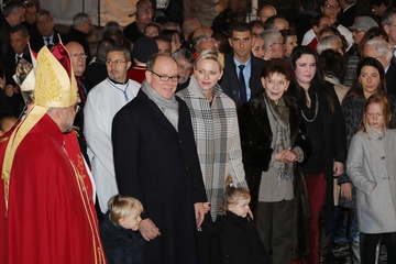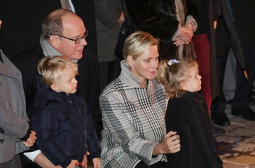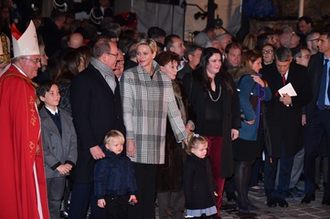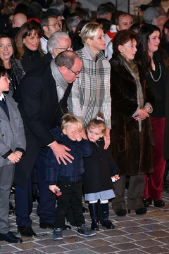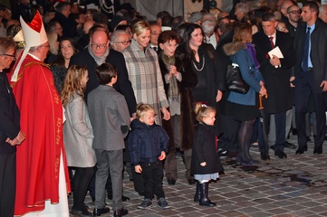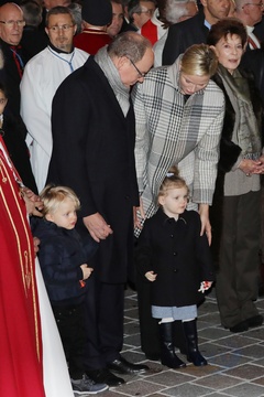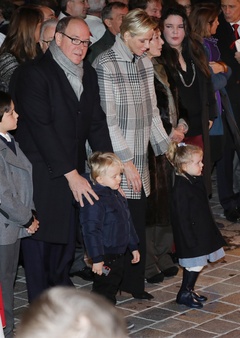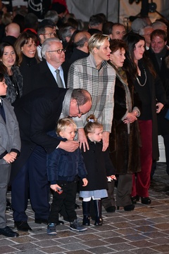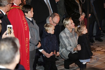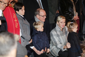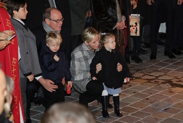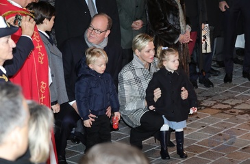 Ksiaze Albert i ksiezna Charlene z dziecmi na ceremonii - Sainte Devote
