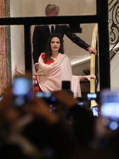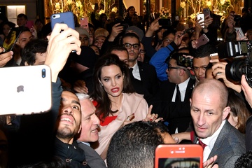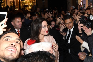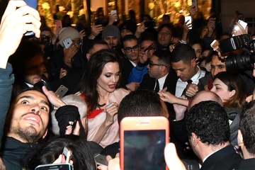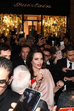Angelina Jolie w tlumie fanow przed Domem Mody Guerlain