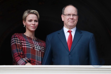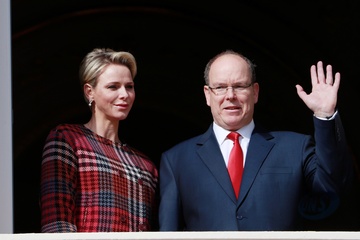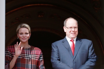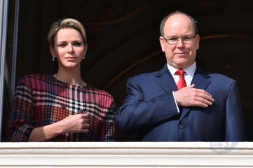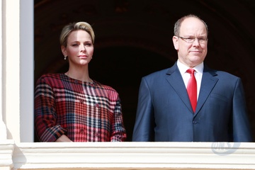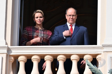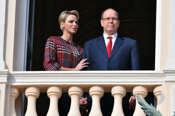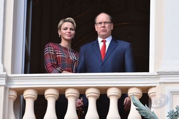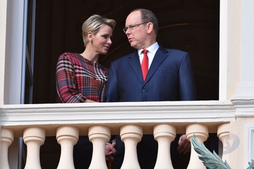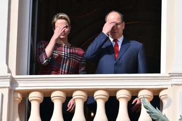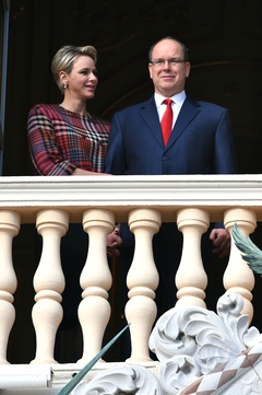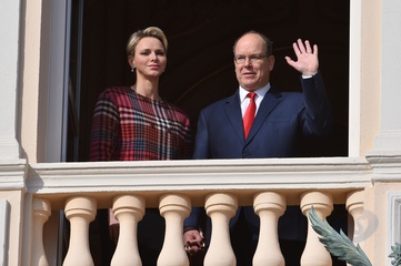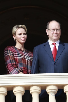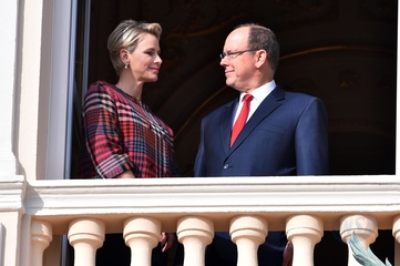 Ksiezna Charlene i ksiaze Albert na balkonie palacu podczas Sainte Devote