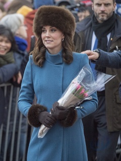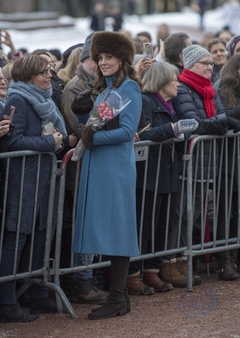 Ksiezna Kate w futrzanej czapie i ksiaze William w Norwegii