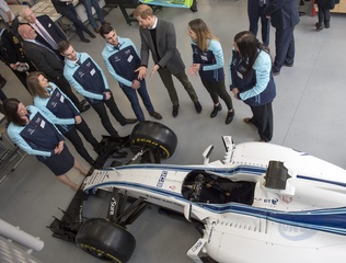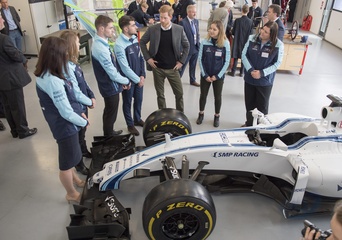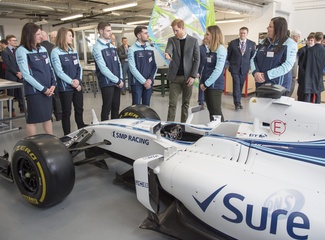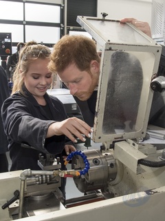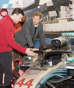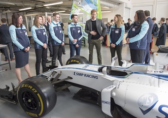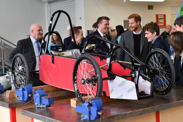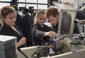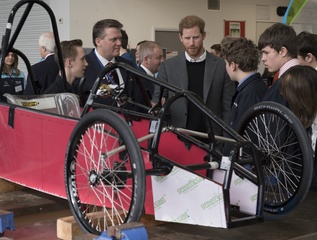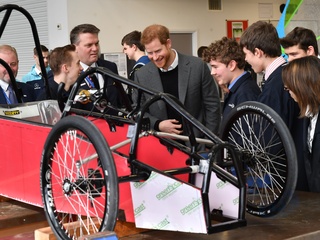 Ksiaze Harry podczas wizyty na Silverstone University Technical College