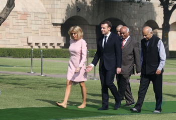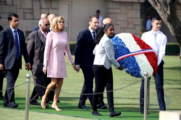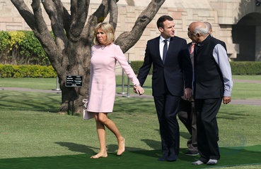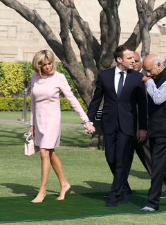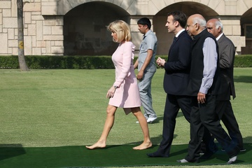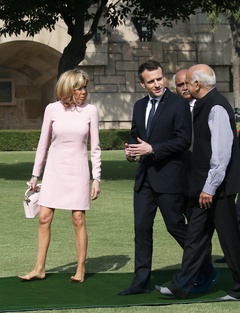 Brigitte Macron i Emmanuel Macron na boso ... New Delhi, Indie