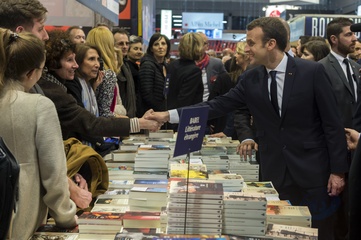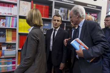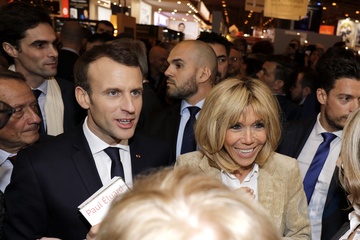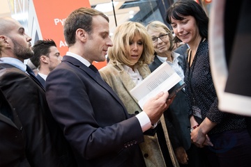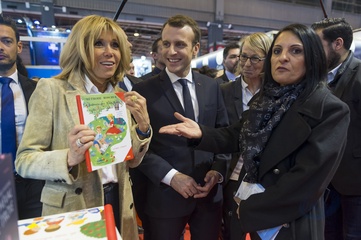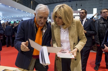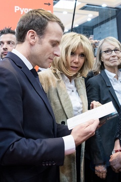 Brigitte Macron i Emmanuel Macron na targach ksiazki