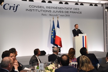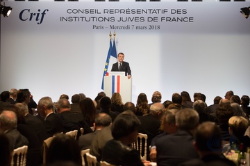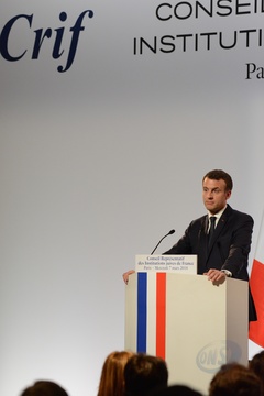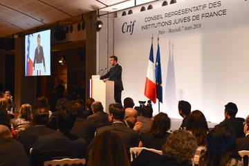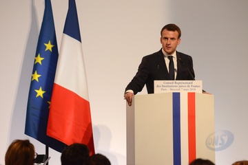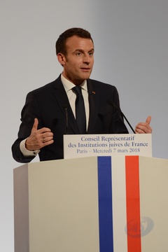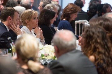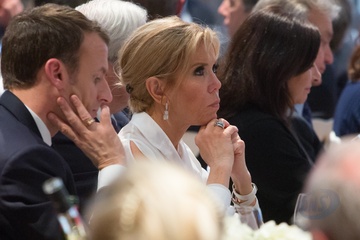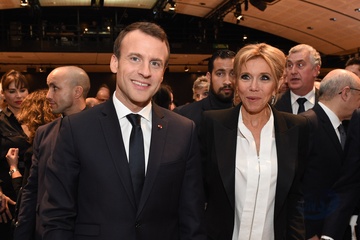 Macronowie na uroczystym spotkaniu z przedstawicielami instytuacji Zydowskich