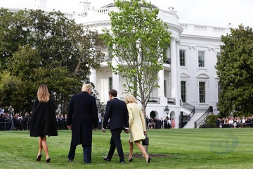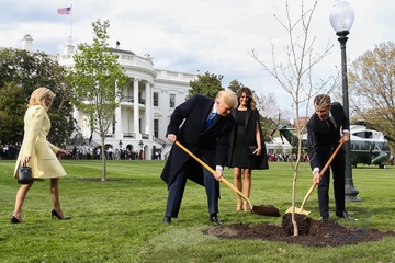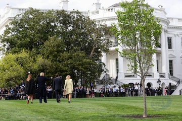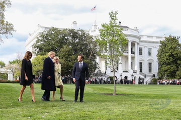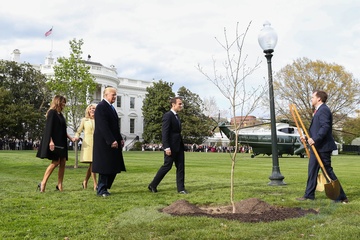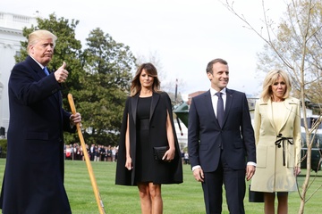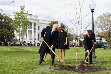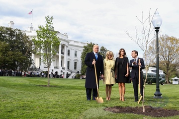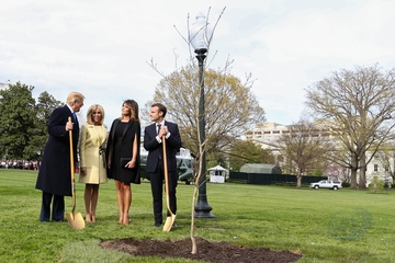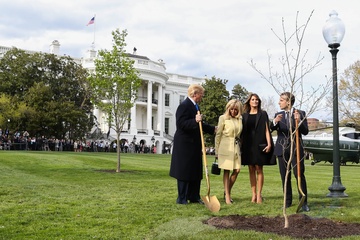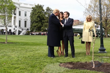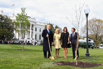 Macronowie i Trumpowie sadza razem drzewo