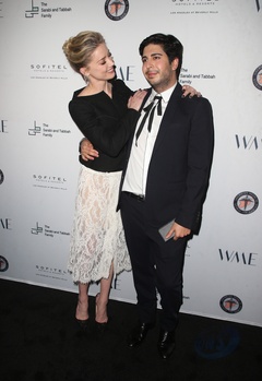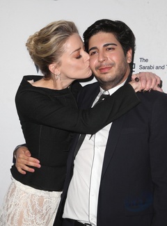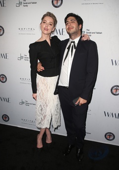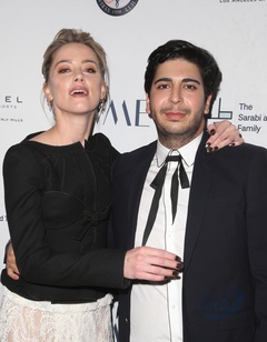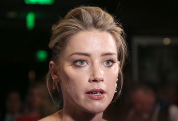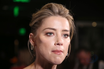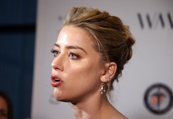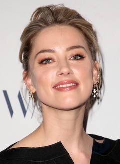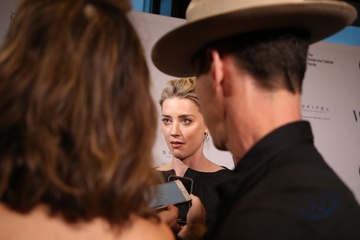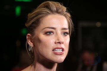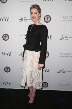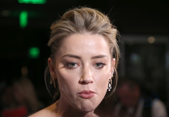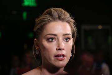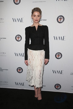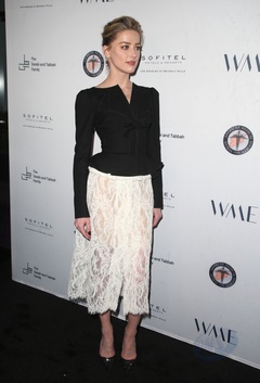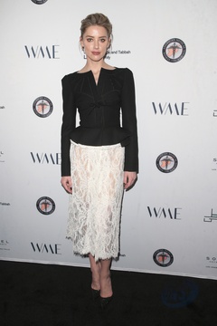 Amber Heard z krostami na twarzy w przeswitujacej spodnicy i czarnym zakiecie
