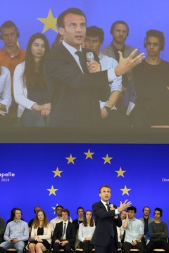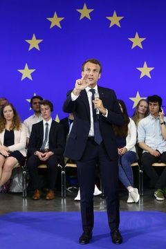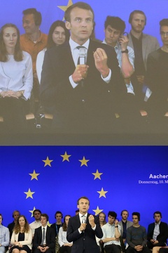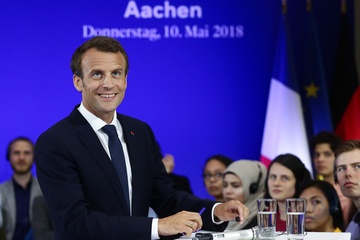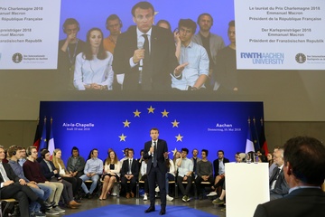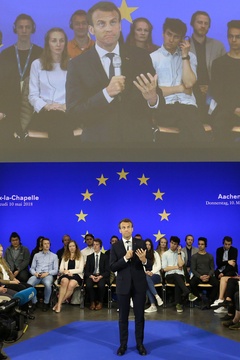 Emmanuel Macron na spotkaniu ze studentami w Aachen