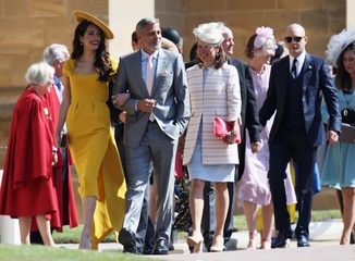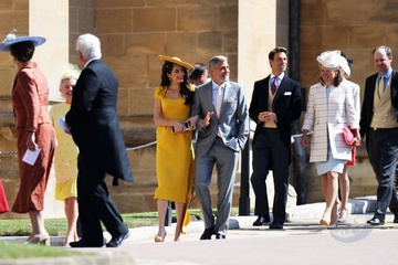 Amal na zolto i George Clooney w drodze do kosciola - Slub Harrego i Meghan
