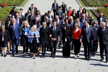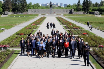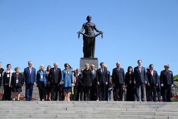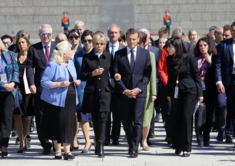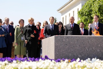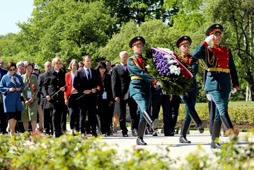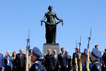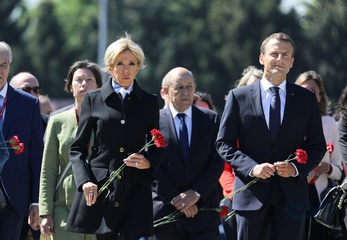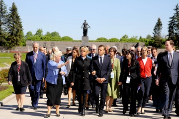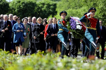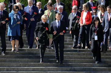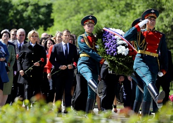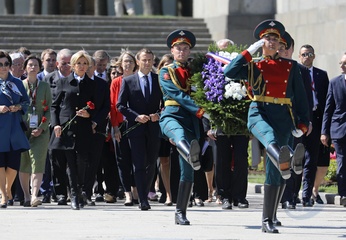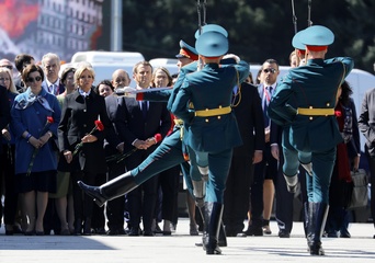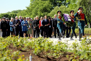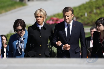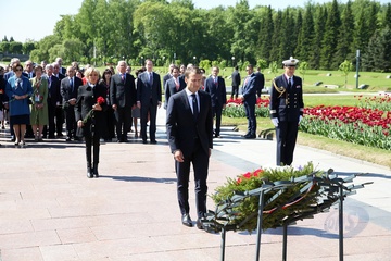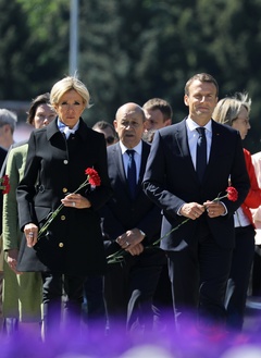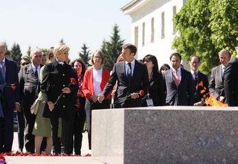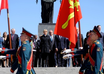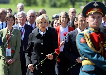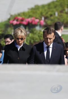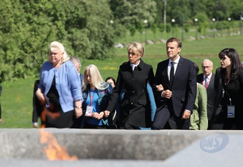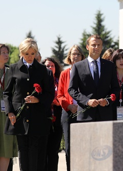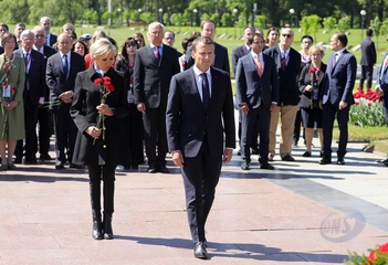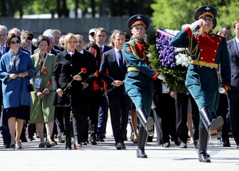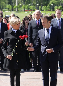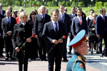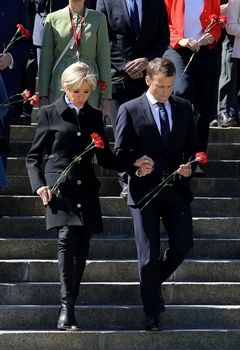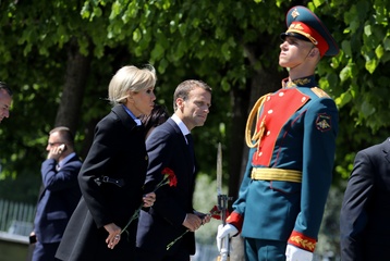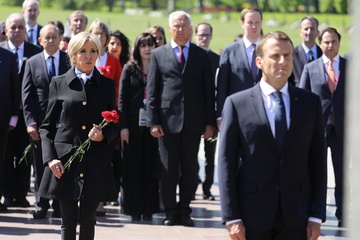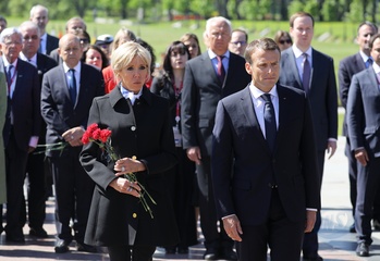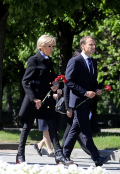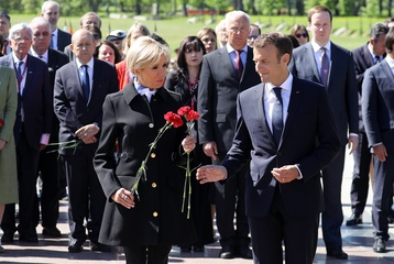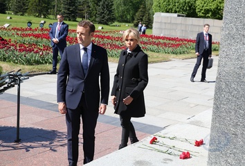Emmanuel i Brigitte Macron zlozyli kwiaty przed pomnikiem Motherland w San Peterburgu