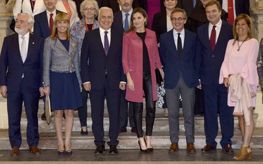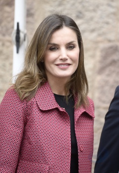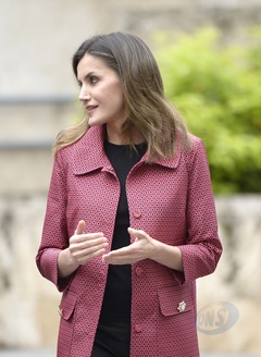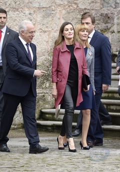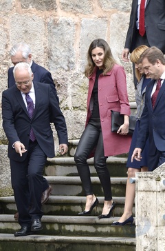 Krolowa Letizia w rozowym plaszczyku w Yuso Monastery