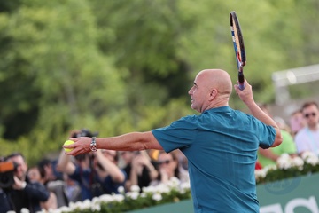 Steffi Graff i Andre Agassi na turnieju tenisowym Longines Future Tennis Aces 100