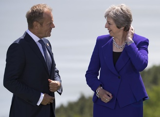 Donald Tusk, Theresa May, Angela Merkel, Donald J. Trump
