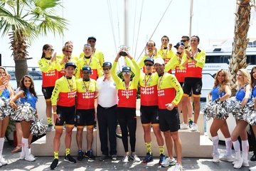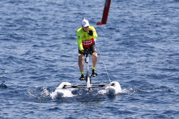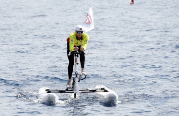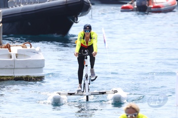 Charlene z mezem i z dziecmi na Water Bike Challenge