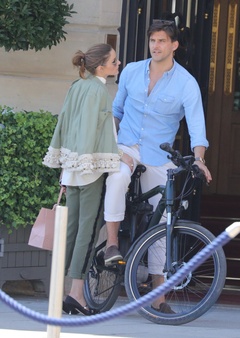 Olivia Palermo caluje sie z mezem na ulicy w Paryzu