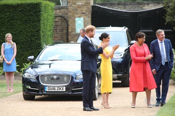 Ksiaze i ksiezna Sussex w drodze na przyjecie w Your Commonwealth Youth Challenge reception