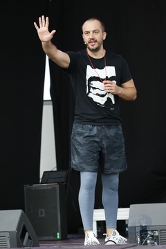 Ewa Chodakowska prowadzi trening w Bochni