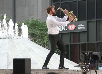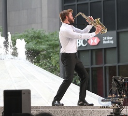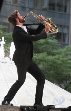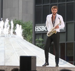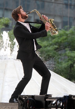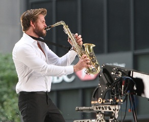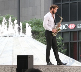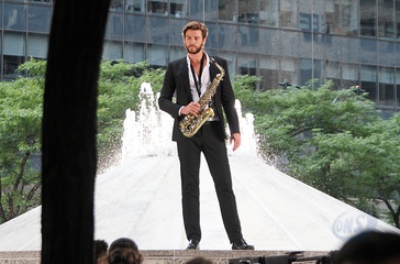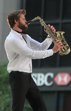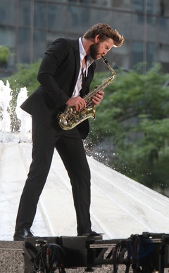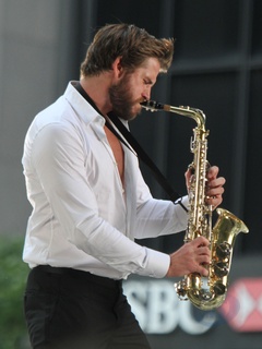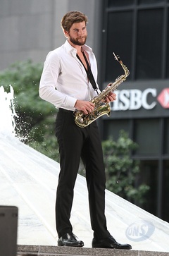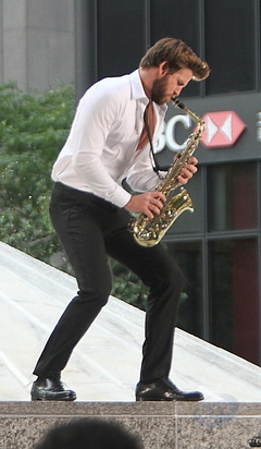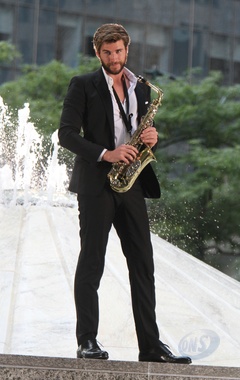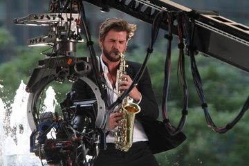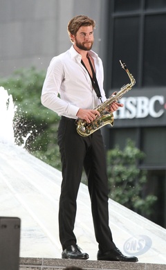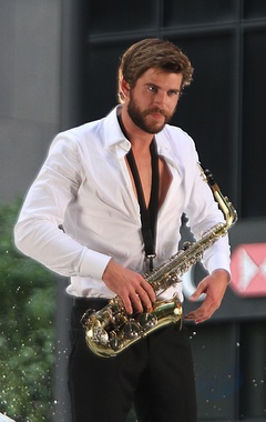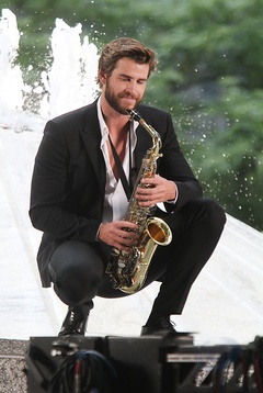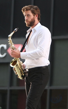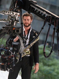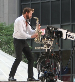 Liam Hemsworth z saksofonem na planie Isn't It Romantic