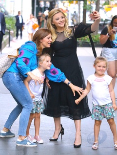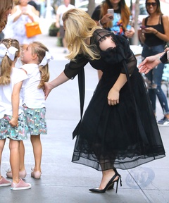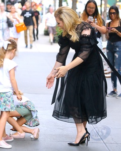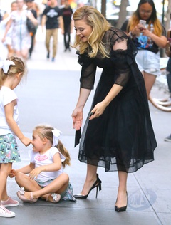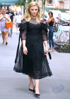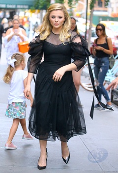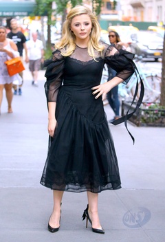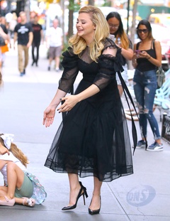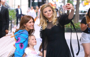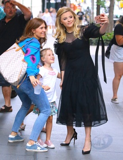 Chloe Grace Moretz w czarnej sukni robi sobie zdjecia z fanami