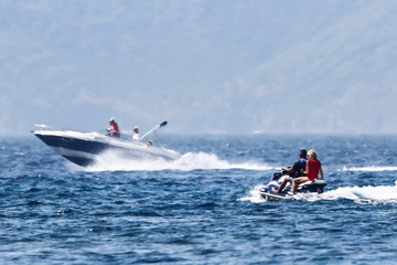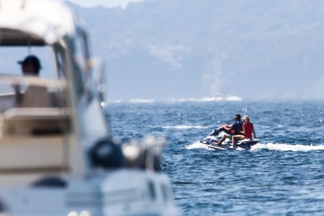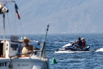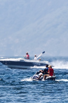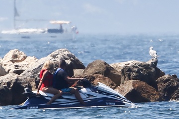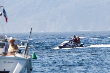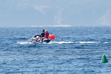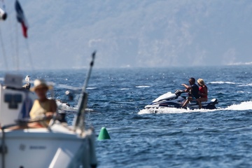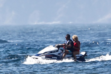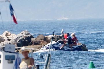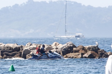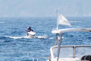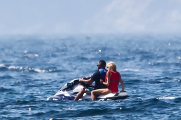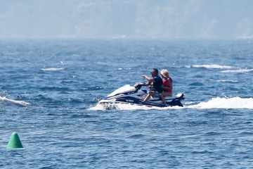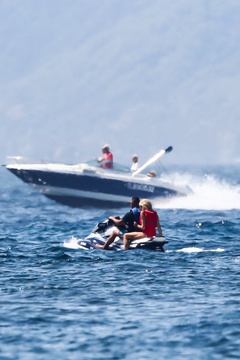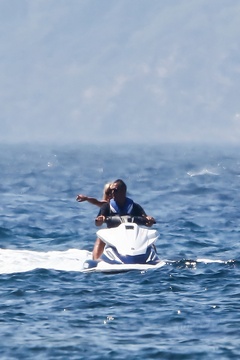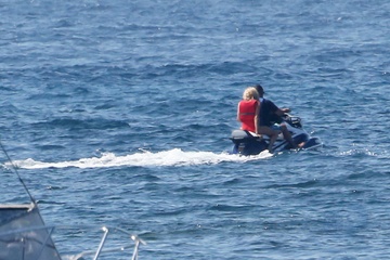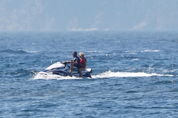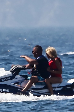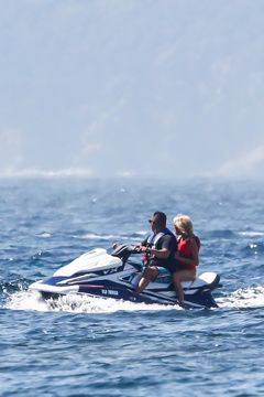 Brigitte Macron ze swoim ochroniarzem na skuterze wodnym