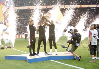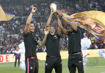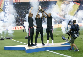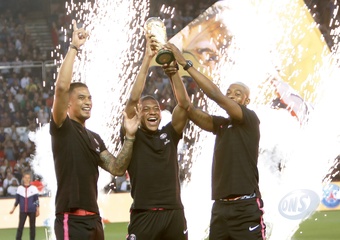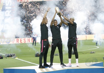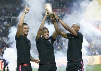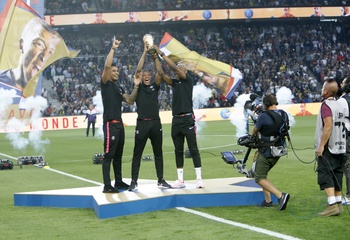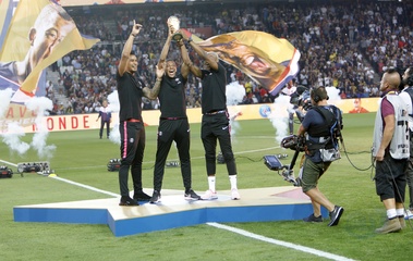 Francuska druzyna pilkarska pozuje z pucharem