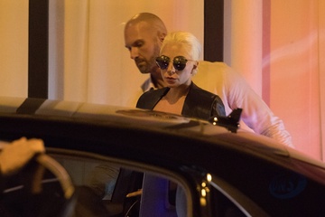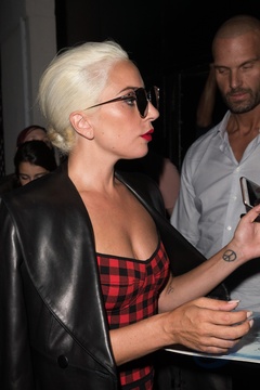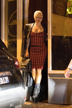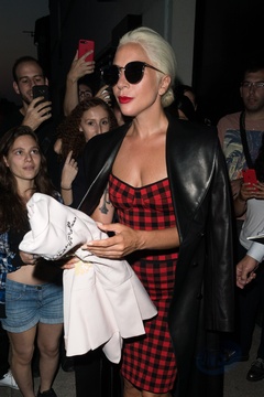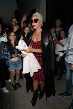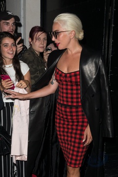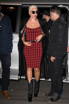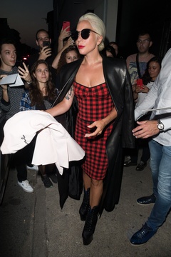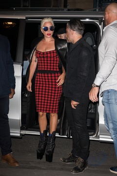 Lady Gaga w sukience w czerwona kratke w Paryzu