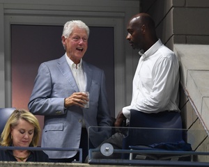 Bill Clinton z puszka Coli dietetycznej na US Open
