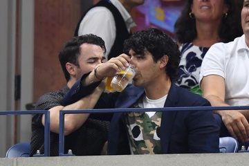 Bracia Jonas z piwkiem na trybunach US Open